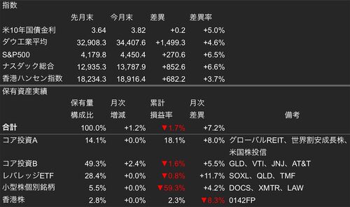 3月は2月の落ち込みからさらにシリコンバレー銀行の破綻、クレディスイスの救済合併など金融不安で相場は悲観的になりましたが、一方で雇用の弱含み、インフレーションの後退から利下げの織り込みが強まって最終的にはプラスに転じました。 保有資産は月間で…