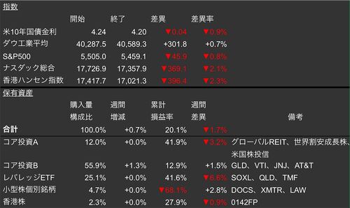 雇用軟化と利下げ期待の高まり、”確トラ”の流れと半導体産業に対するプレッシャー、関税引き上げによるインフレ再燃懸念など落ち着かない一週間でした。 半導体、大型テックが急落し、SOXLは一日でなんと▼20%の暴落。これだけで保有資産を大きくマイナスに下…
